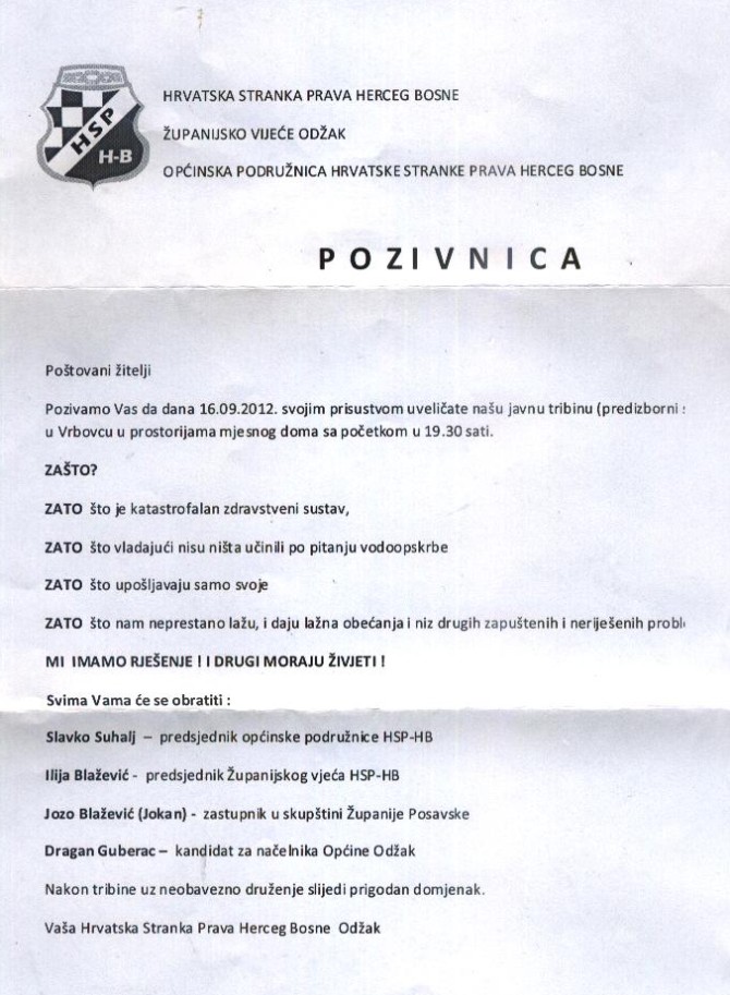 HSP HB vas poziva na javnu tribinu u Vrbovcu.