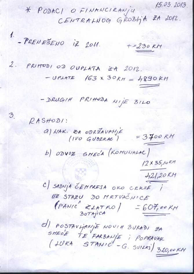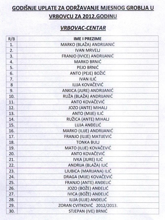 Naknada za Centralno groblje 18-02-2013 Izvještaj o izvršenim uplatama Naknade za održavanje Centralnog groblja u 2012. godini.