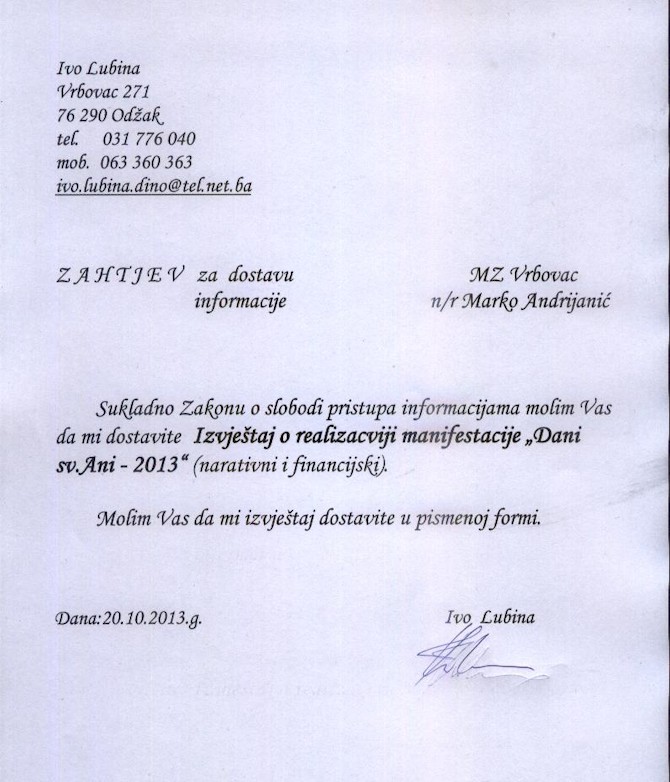 ali nije mi omogućen uvid u iste. Evo protekao je i mjesec dana kao sam se pismeno obratio sa istom nakanom, ali bez efekta. Nije mi jasno šta je razlog ovakvog ponašanja vodstva MZ i vjerujem da će nam uskoro biti dostupne tražene informacije.