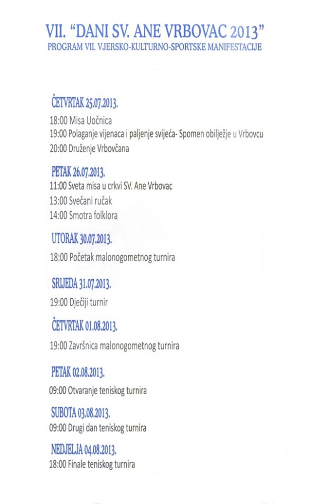 Program manifestacije "Dani sv. Ani - 2013"